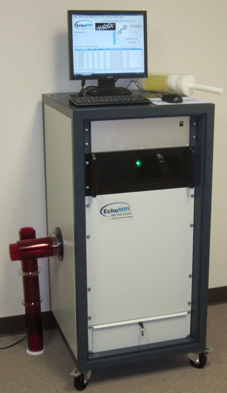The EchoMRI™-500, 700, 900 and 1100 Analyzers are stand-alone units, on 4 casters for easy relocation. They use standard power sources, and are completely shielded and safe to run.